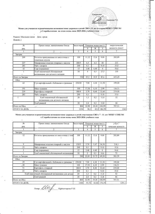 (завтрак 1-4 ммс сво ОВЗ)