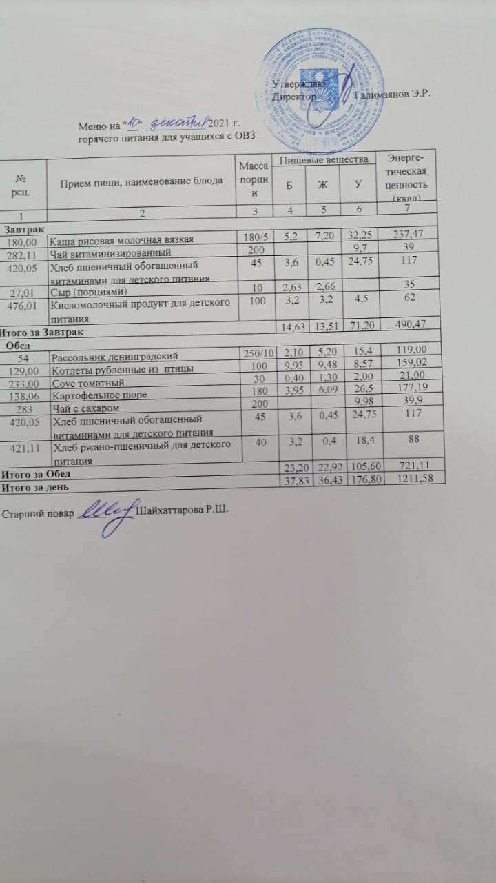 (завтрак овз ммс)