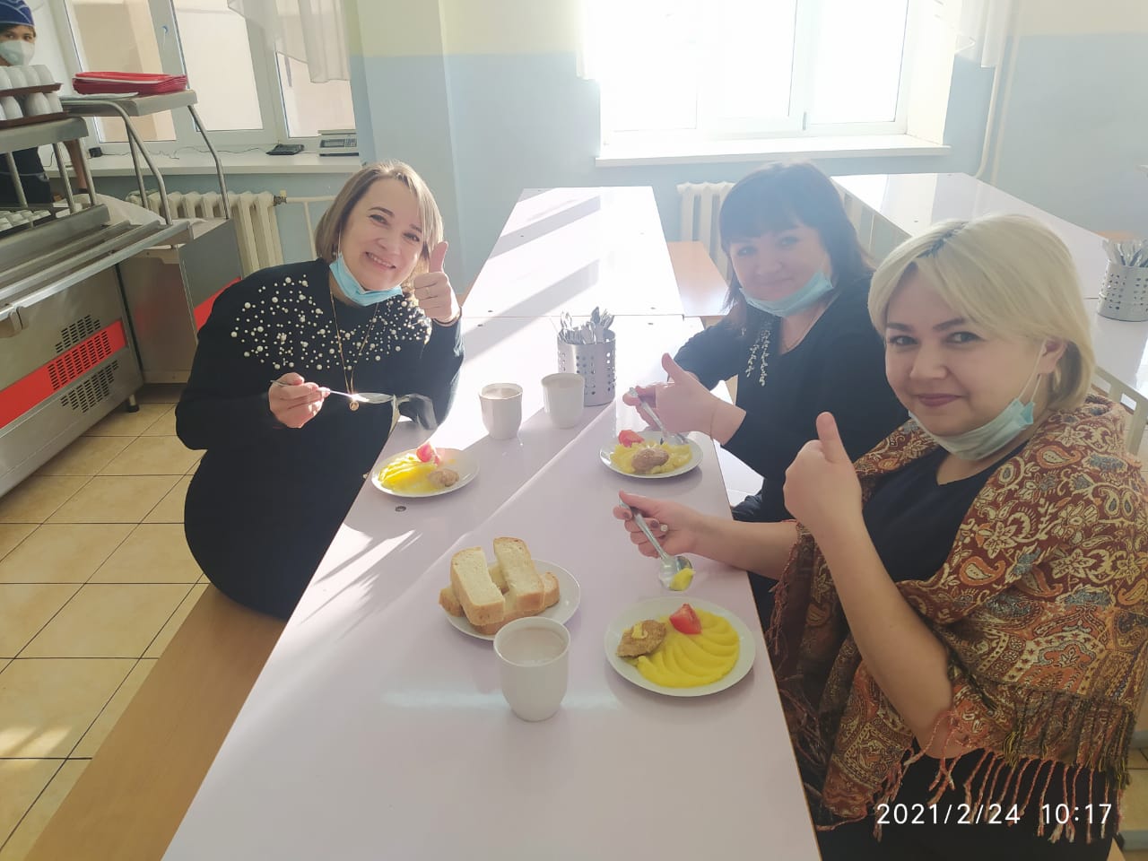 Сегодня, 24 февраля 2021 года, в нашей школе состоялся День открытых дверей школьной столовой. Не секрет, что организация горячего питания в школе – один из основных вопросов, волнующих и родителей и учителей. Беседу «Здоровая пища – здоровый ребёнок» подготовила и провела Шафикова Лариса Салимьяновна, ответственная за питание. Лариса Салимьяновна познакомили родителей с расчетом калорийности детского питания в школе. Завершился День дегустацией блюд школьного меню. Мнения родителей о проведённом сегодня в школе Дне открытых дверей школьной столовой были только положительными.