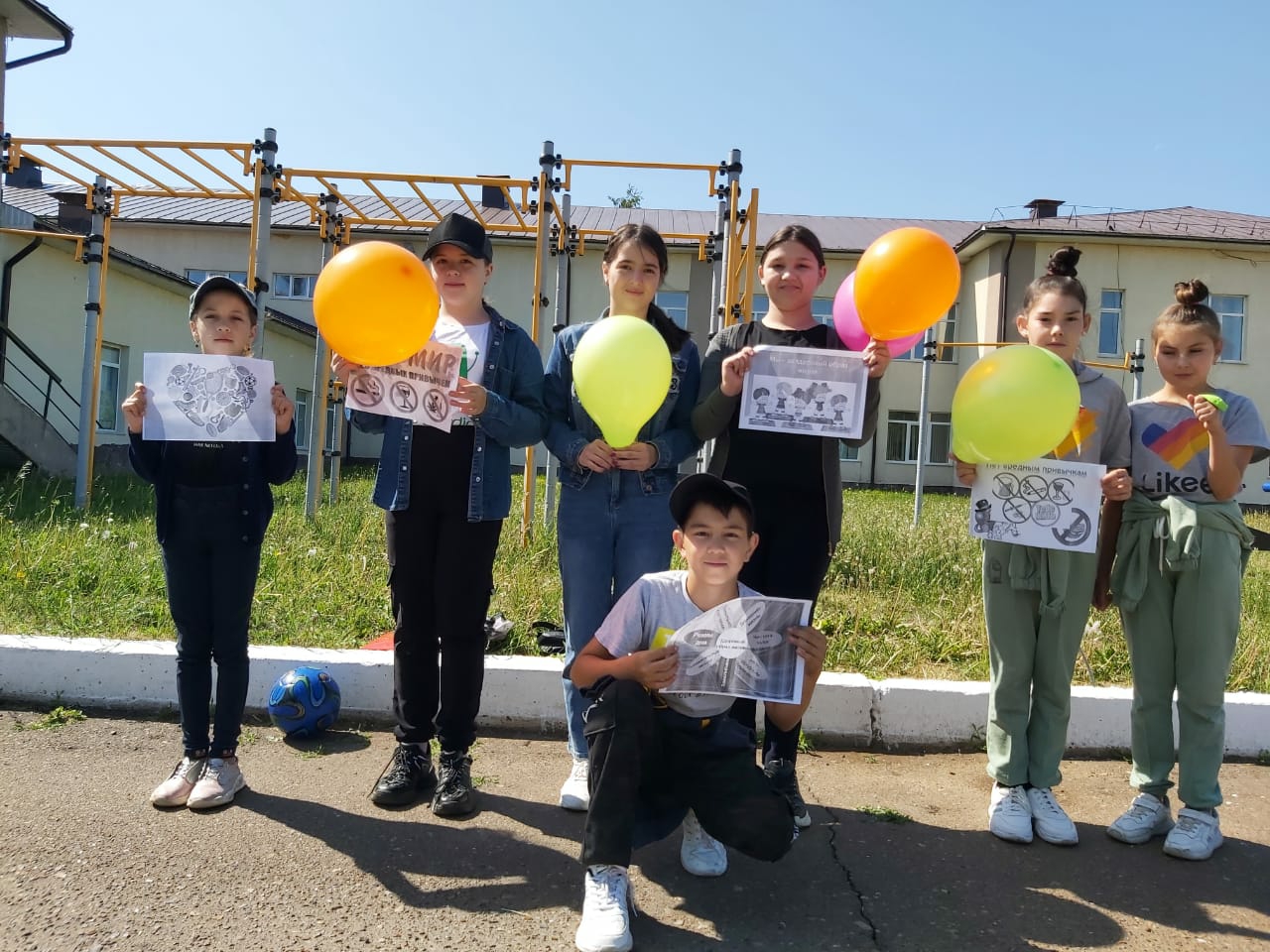Третий день пришкольной дворовой площадки был посвящен теме "Мы против вредных привычек". Педагог-психолог Арсланова Г.И. рассказала про меры профилактики вредных привычек. Дети весело и продуктивно провели время: играли в пионербол, преодолевали полосу препятствий на время. А также ребята надували воздушные шарики, что является отличным упражнением для легких.